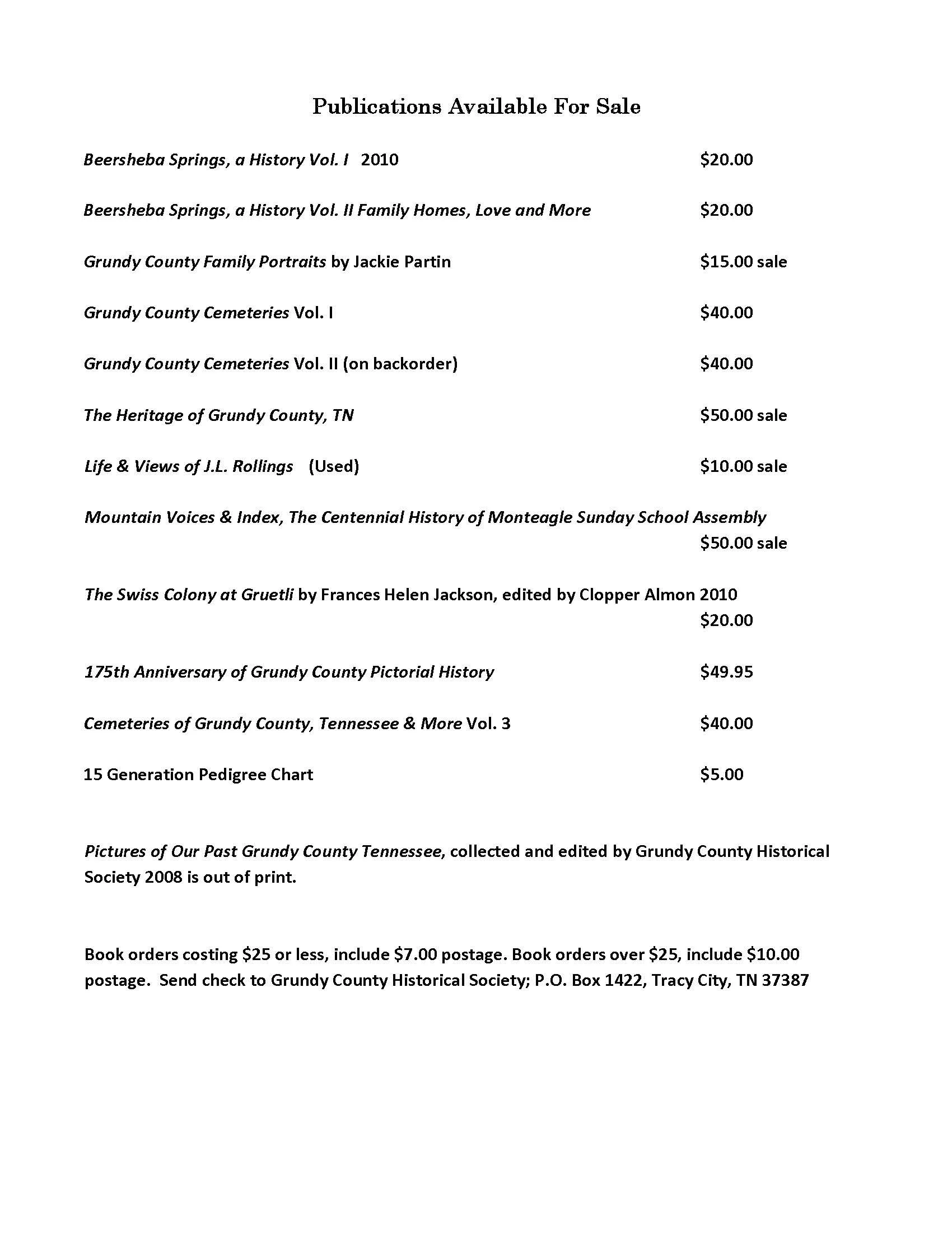 Publications for Sale